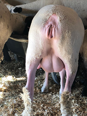 These are some yearling ewes sired by my buck owned with Brian Skidgel. He creates this feminine look and stylish profiles that I like to see when I go to the barn. Lambs bred like these available toward the end of April.